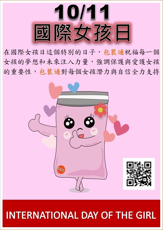 【包裝通支持國際女孩日】 在國際女孩日這個特別的日子 包裝通祝福每一個女孩的夢想和未來注入力量 強調保護與愛護女孩的重要性 包裝通對每個女孩潛力與自信全力支持 &...