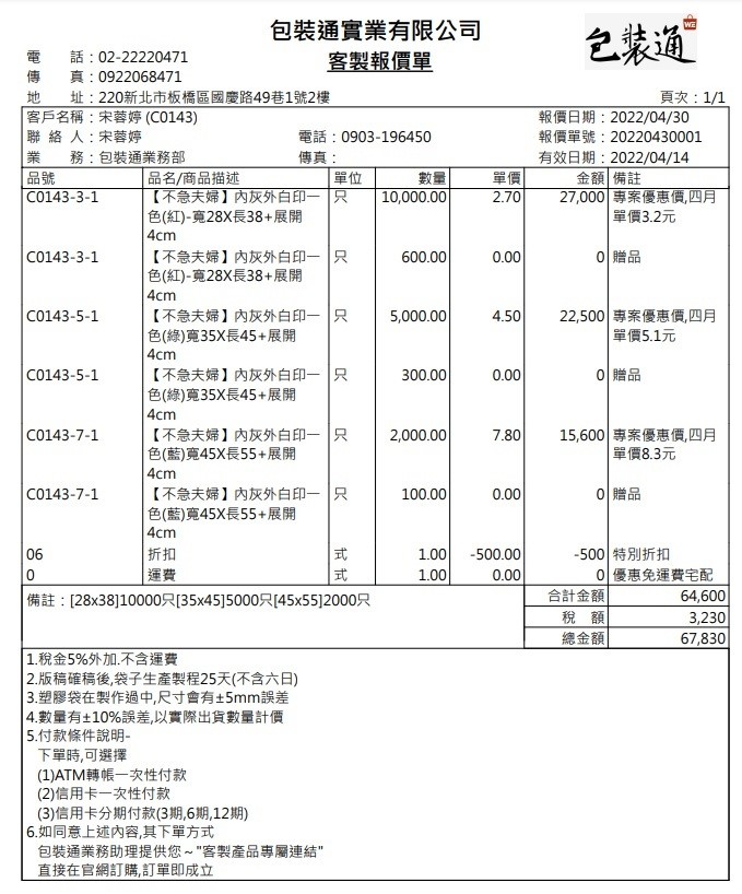 3.版稿確稿後,袋子生產製程25天(不含六日)