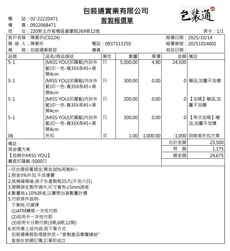 3.版稿確稿後,袋子生產製程25天(不含六日)