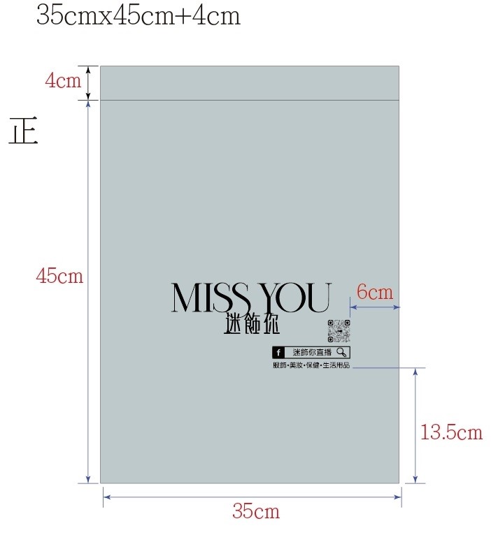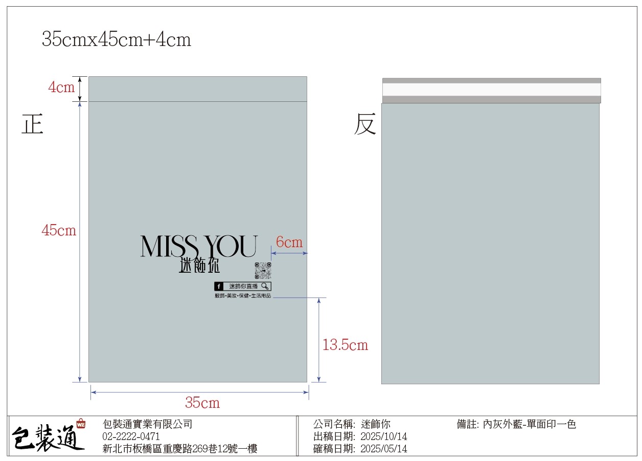 【MISS YOU】尼羅藍內灰外藍印刷一色-寬35x長45+展開4cm,5000只(加稅)