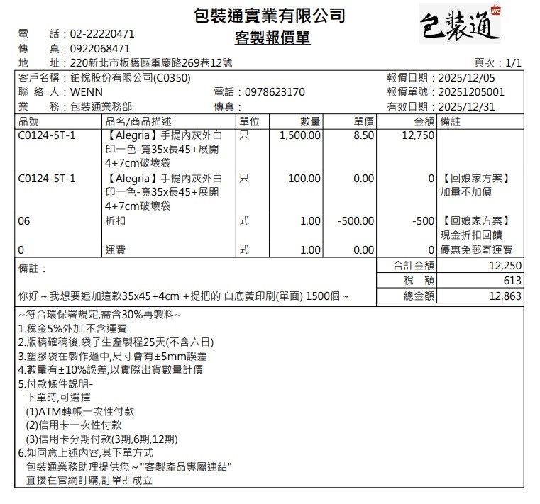 3.版稿確稿後,袋子生產製程25天(不含六日)