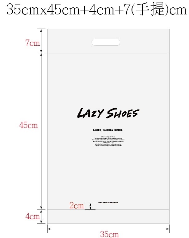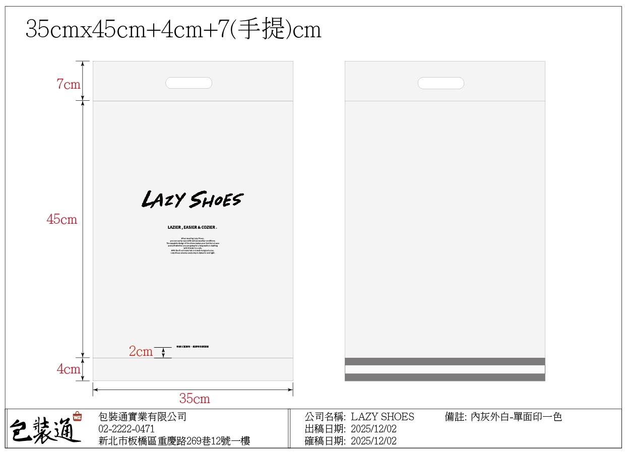 【LAZY SHOES】手提內灰外白印一色(深灰)35x45+4cm破壞袋,1500只(加稅)