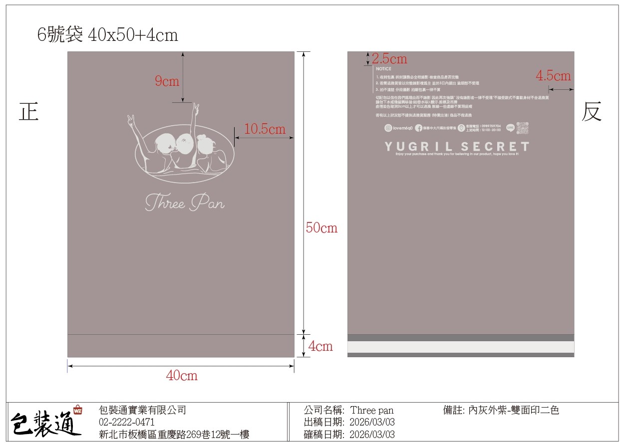 【公司名稱】【THREE PAN】潘小姐(羽)破壞袋專案(加稅)