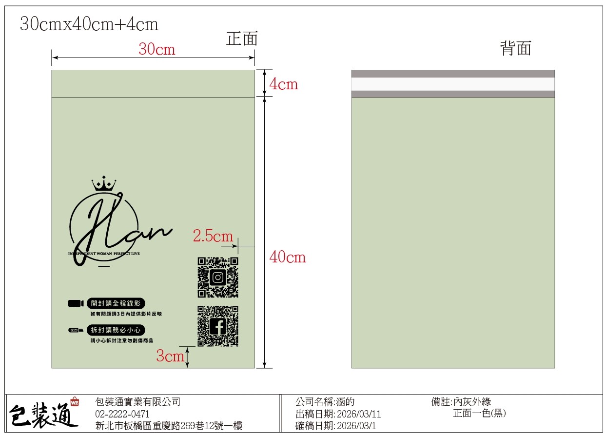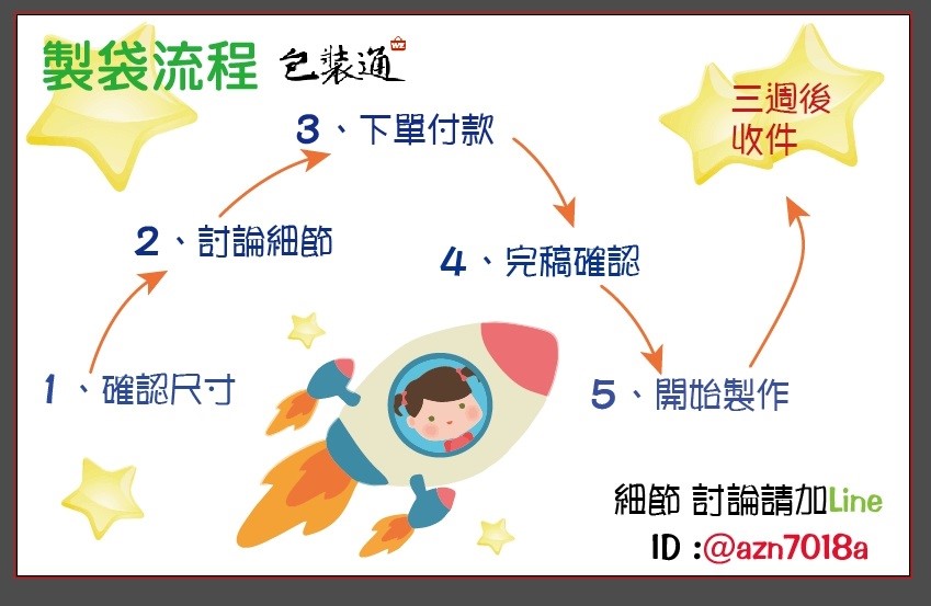 3.版稿確稿後,袋子生產製程25天(不含六日)